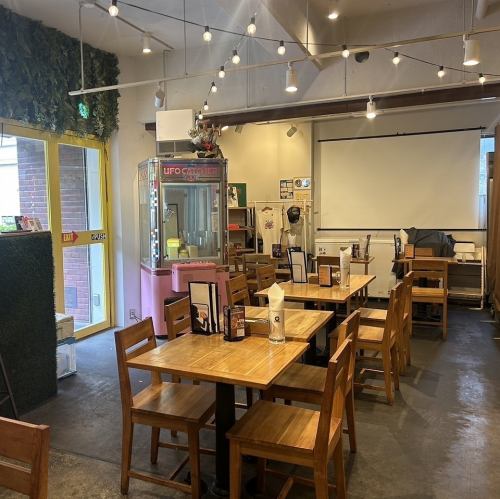 【木のぬくもりあふれる空間で貸切パーティー】当店の温かみあるテーブル席をまるごと貸切にして、仲間や家族との特別な時間を楽しみませんか?大型プロジェクターも完備しているので、映像を使ったイベントやプレゼンもOK!バーガーとドリンクを囲んで、思い出に残るパーティーをぜひ当店で。